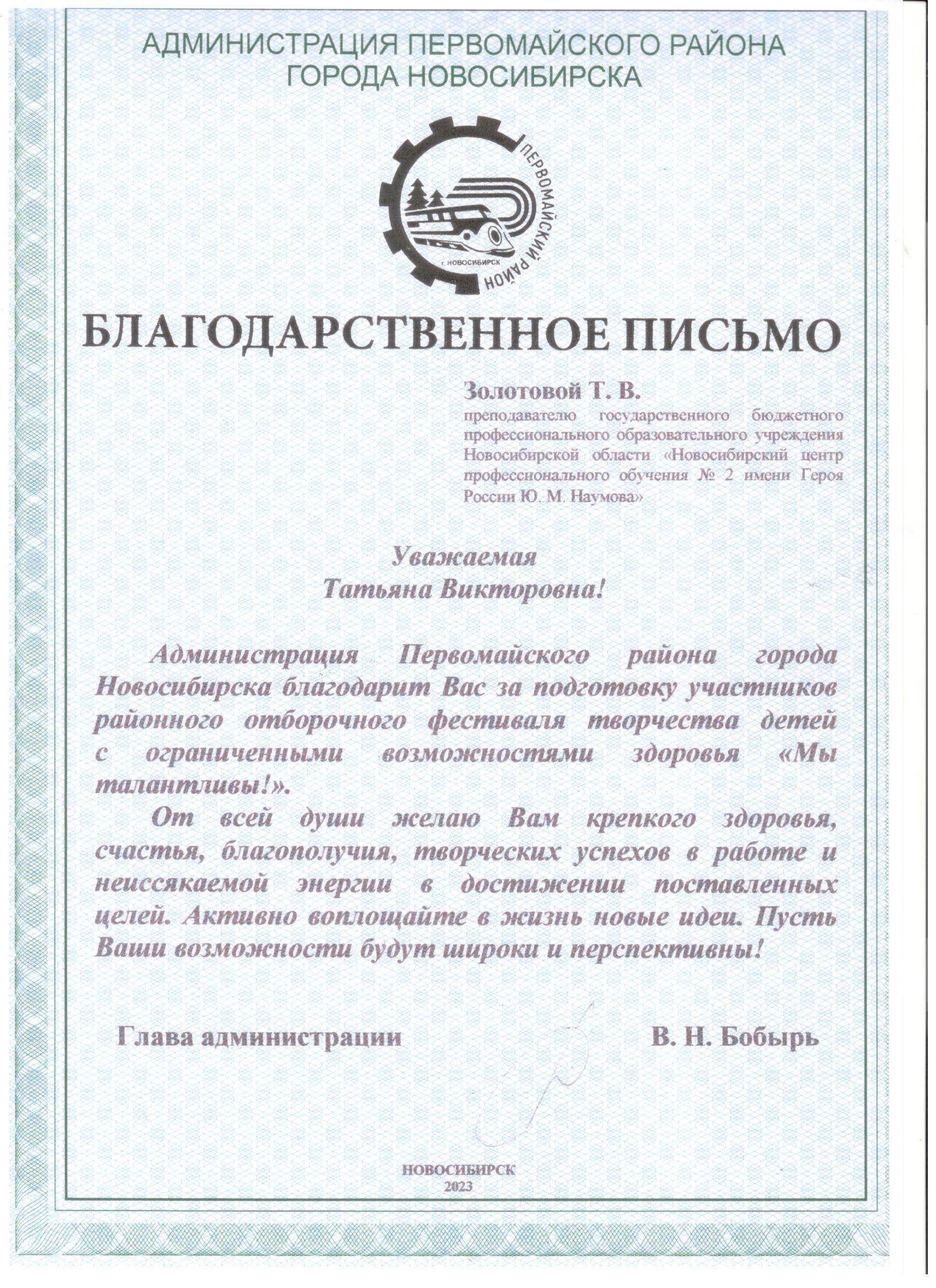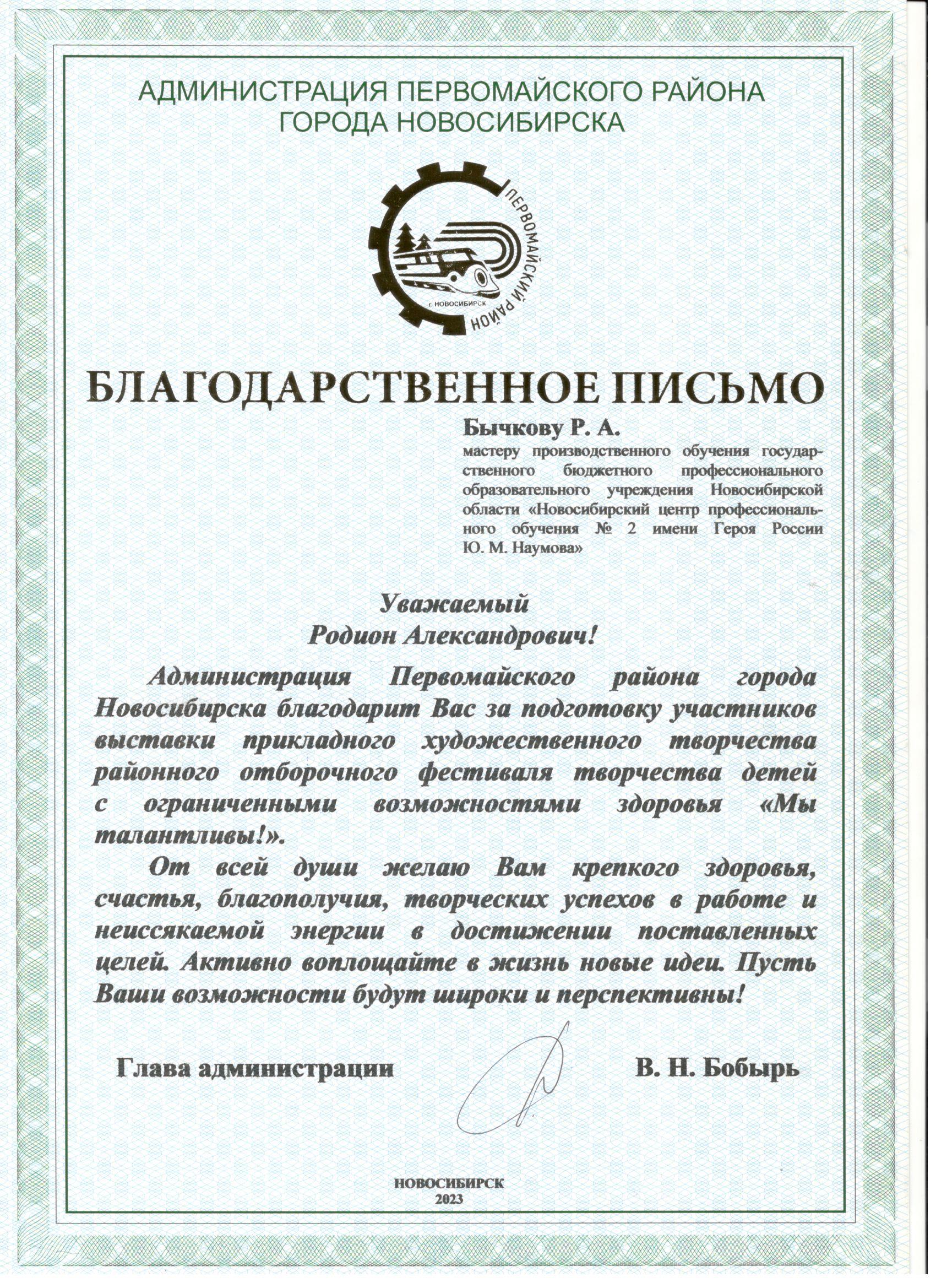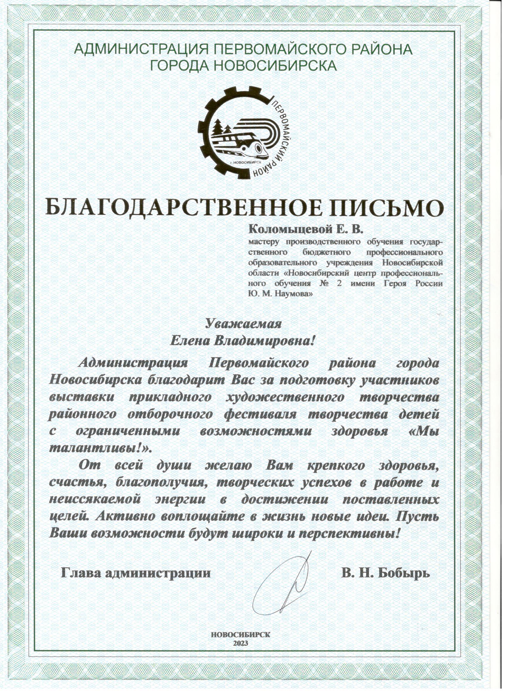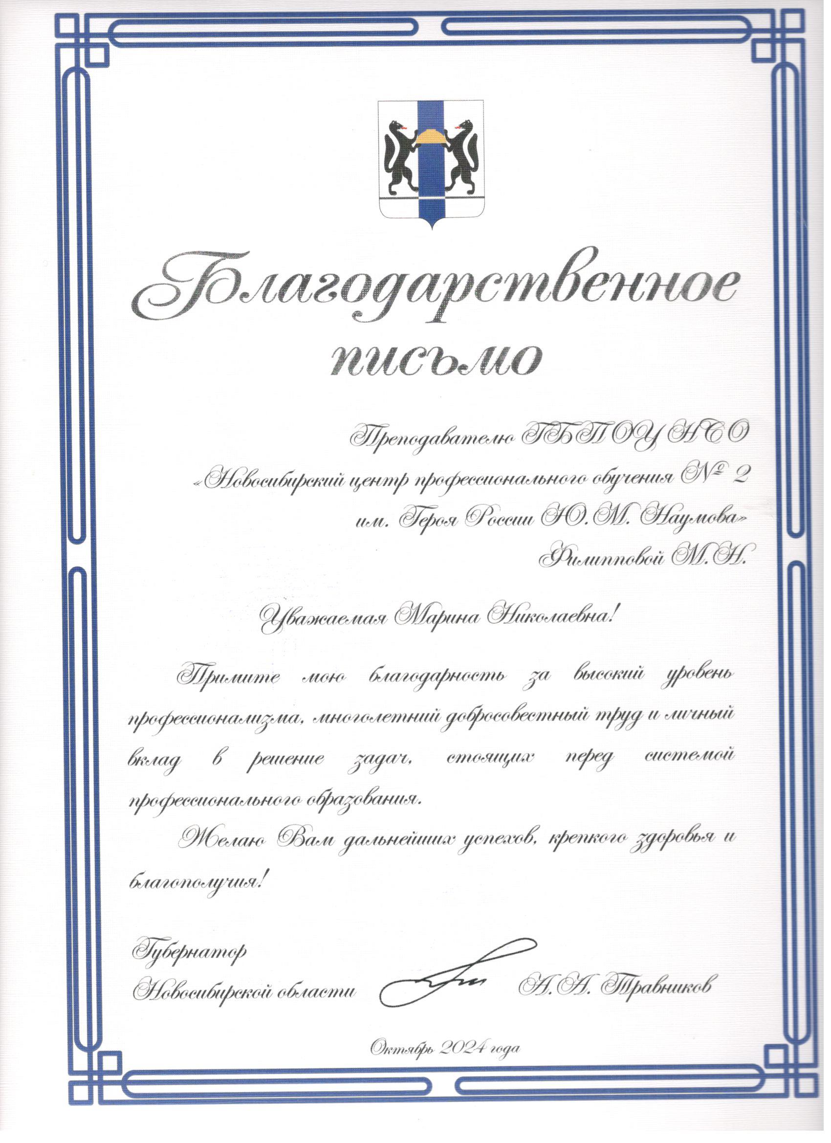 Благодарственные письма: