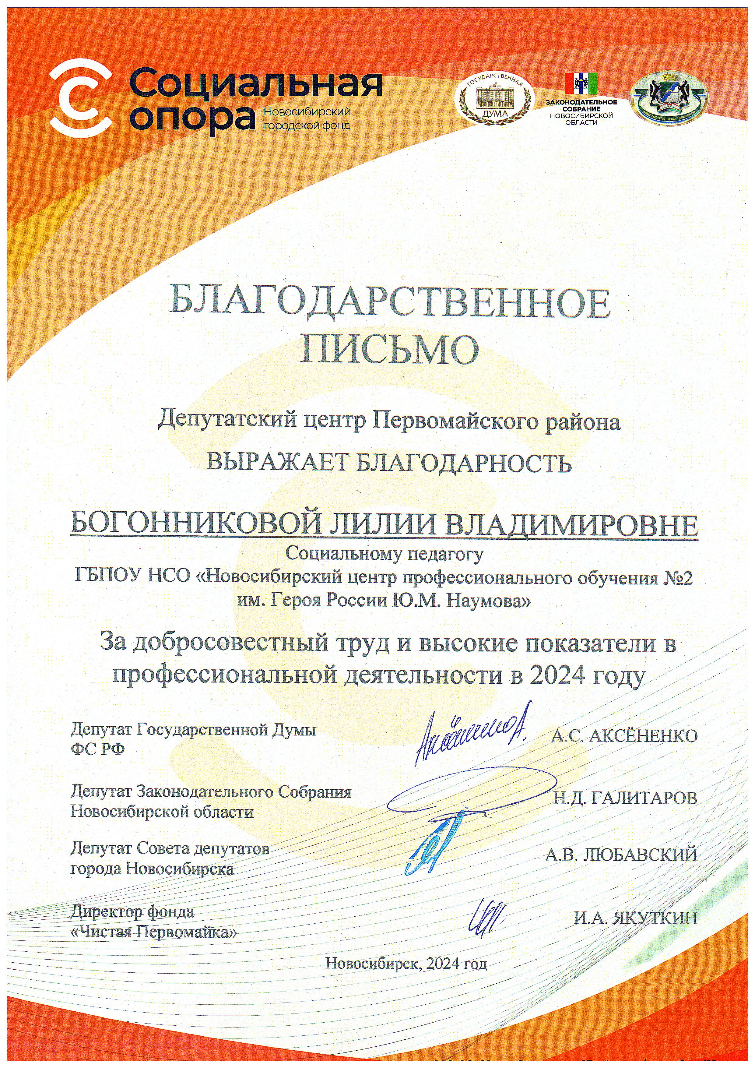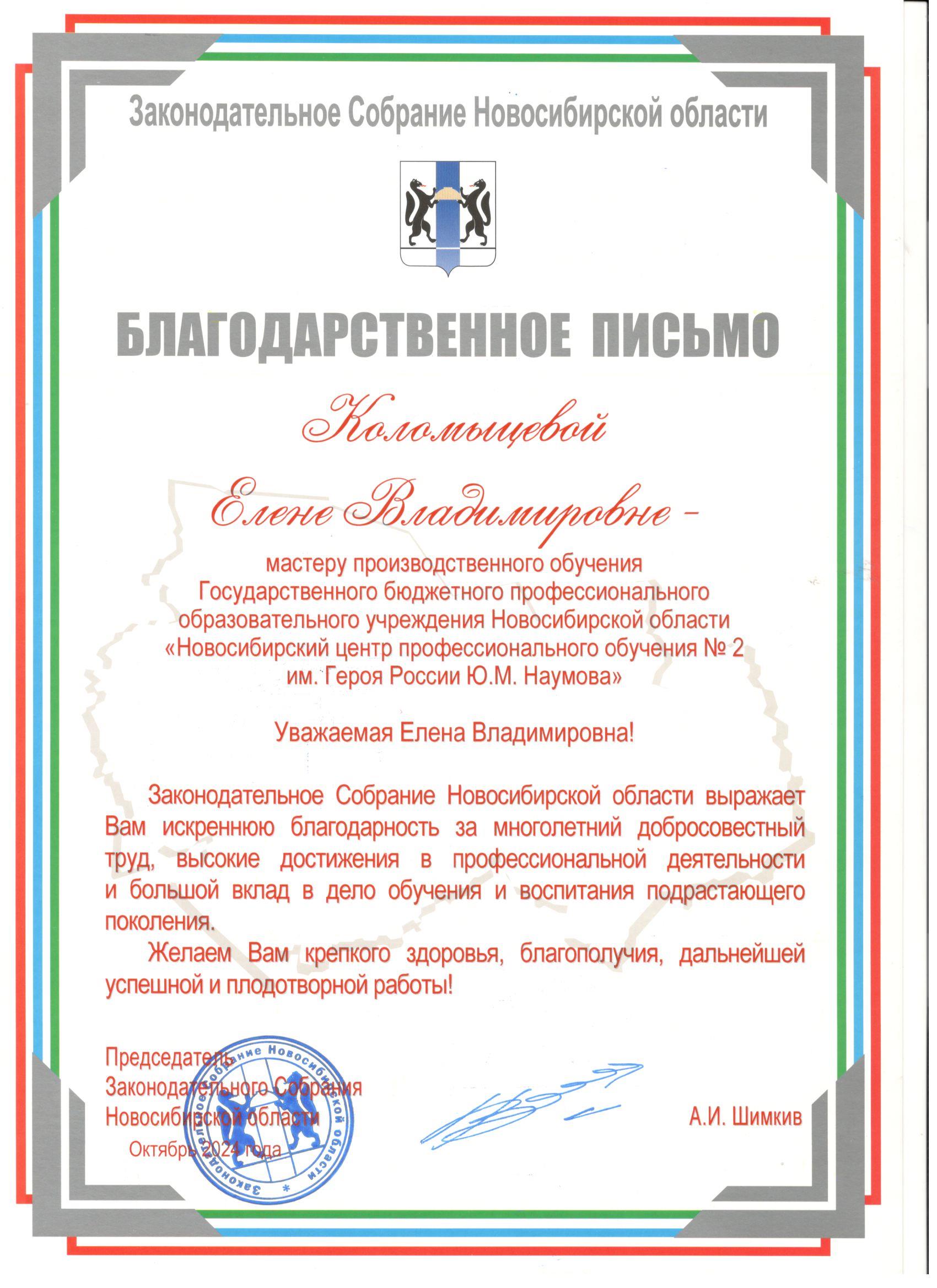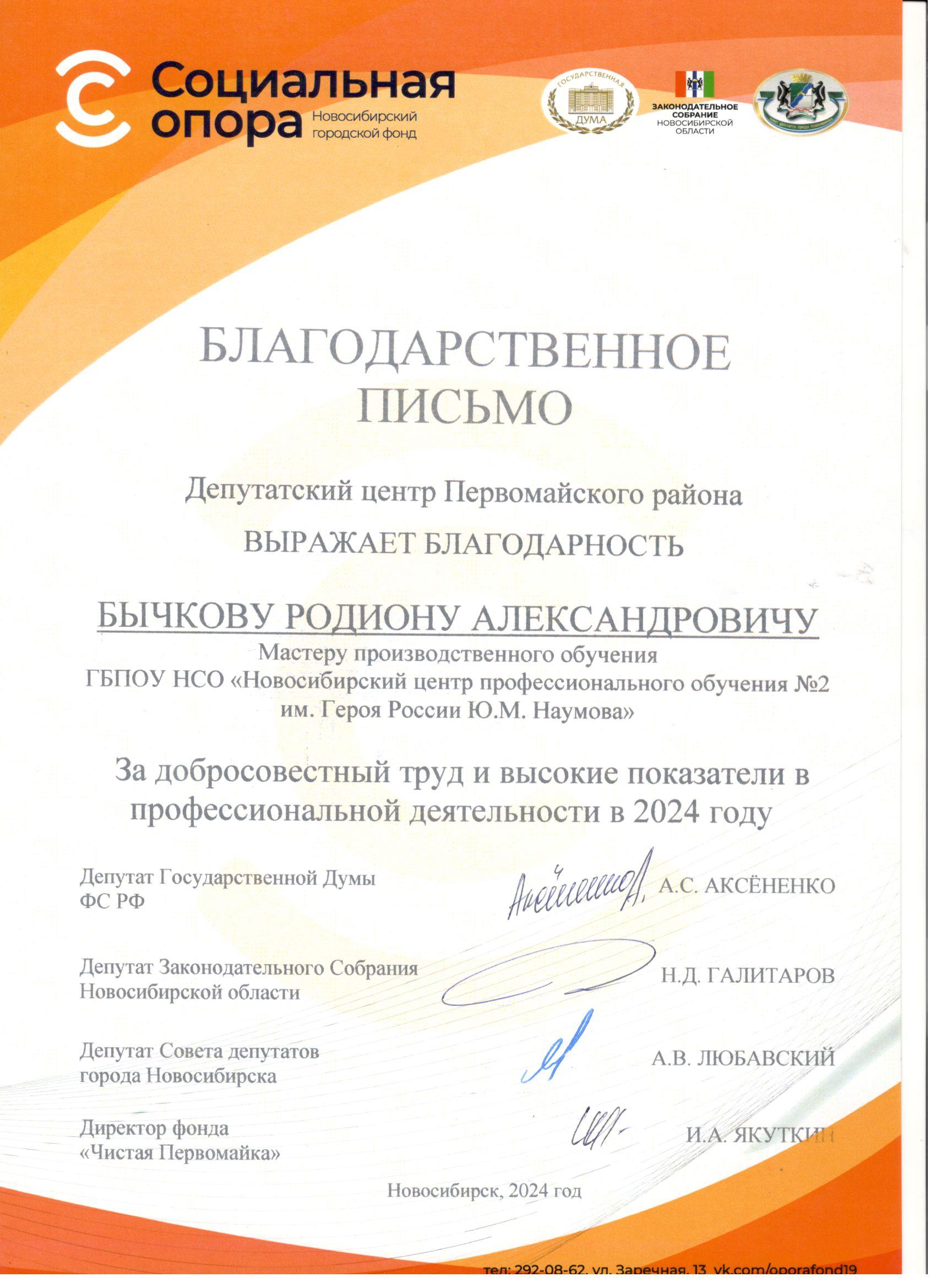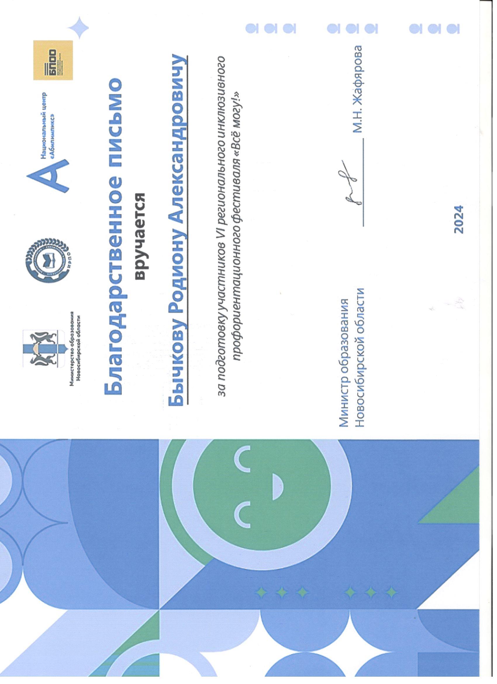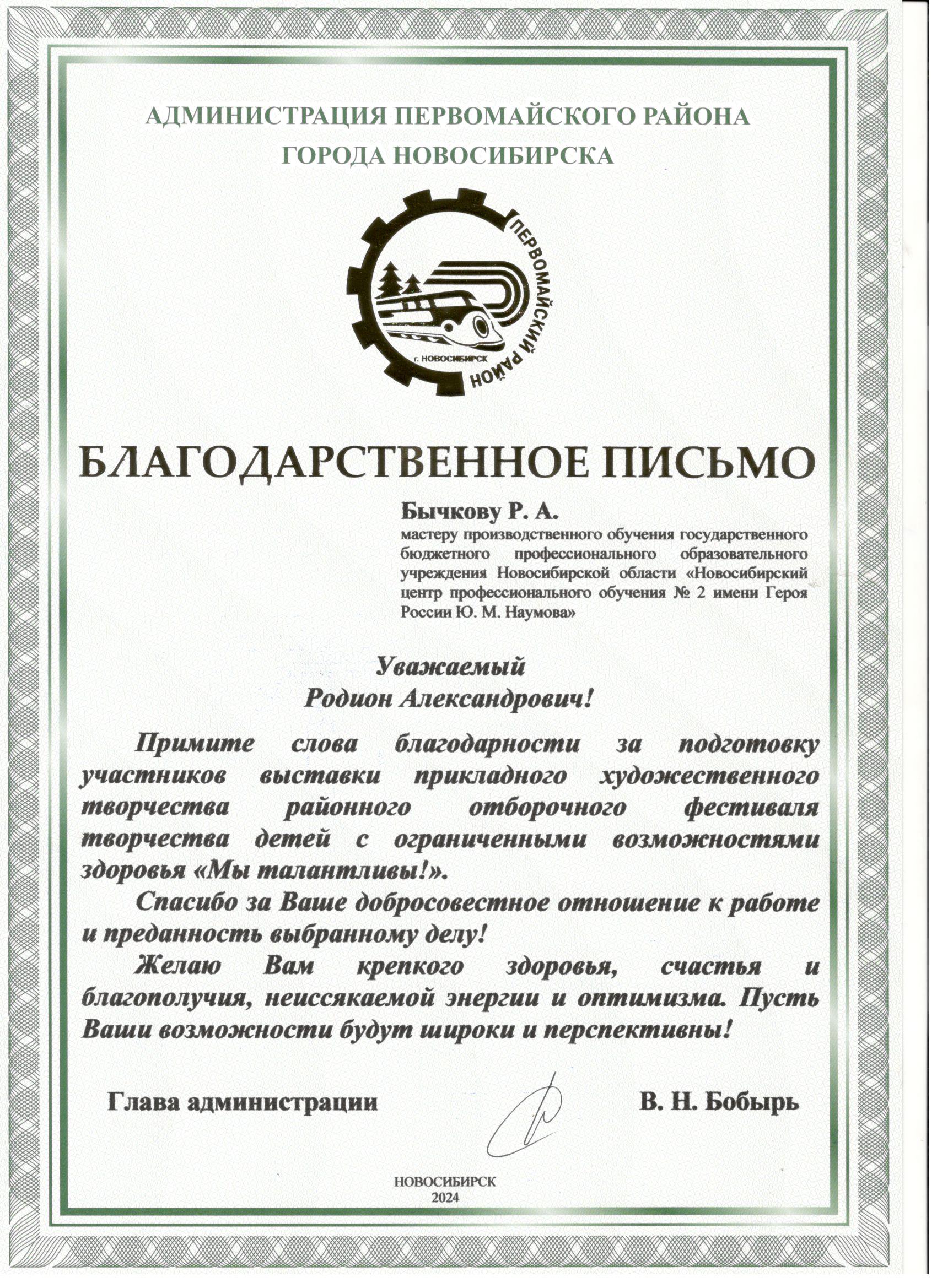 Благодарственные письма: